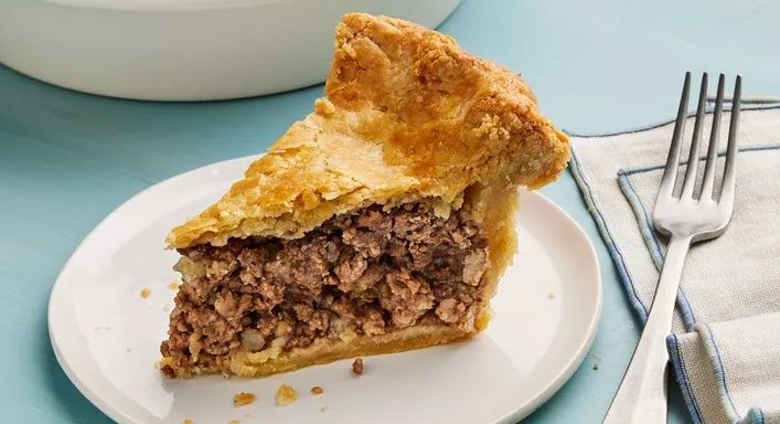 Directions:This tourtière is a traditional meat pie. The main feature of Papa's recipe is that the meat and onions are boiled for a couple of hours. In a large pot, combine ground beaf, pork and onions. Add water to cover. Bring to a boil, turn down and simmer for a good two hours. Scoop off fat as it floats to the top, and set aside.